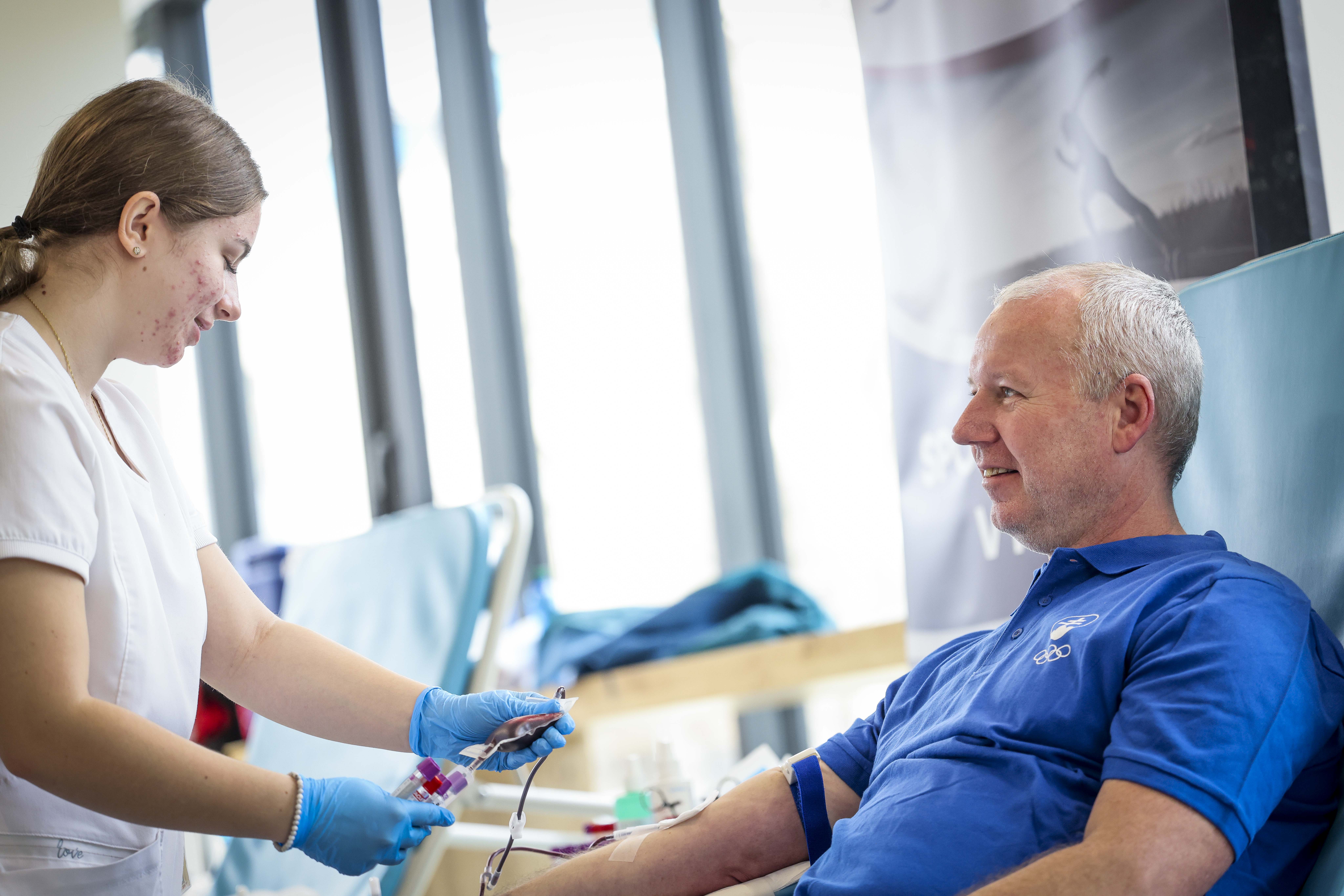 Krv počas stredajšieho predpoludnia darovali olympijskí medailisti Jozef Gönci, Jozef Krnáč, olympionici Peter Mlynár, Martina Kohlová, Marcel Lopuchovský, Iveta Putalová, medailista z mládežníckych šampionátov vo veslovaní Peter Strečanský, predseda správnej rady Nadácie SOŠV Dušan Guláš, výkonný riaditeľ SOŠV Gábor Asványi, riaditeľ NŠC Vladimír Baluška či zamestnanci SOŠV, NŠC a národných športových zväzov. Nedávne zdravotné problémy znemožnili darovanie krvi olympijskému víťazovi vo vodnom slalome Ladislavovi Škantárovi, ktorý prišiel osobne podporiť darcov krvi.