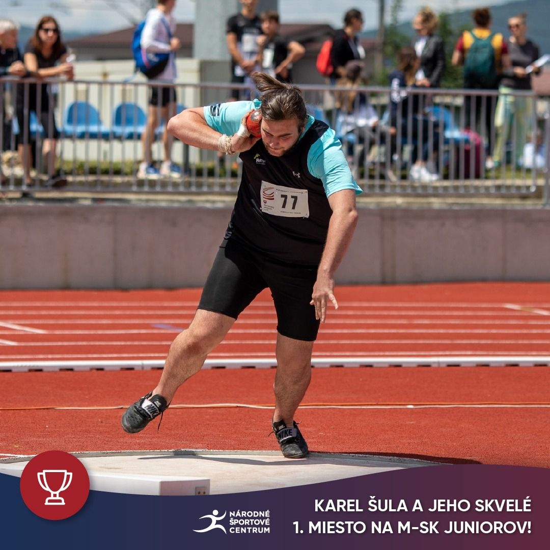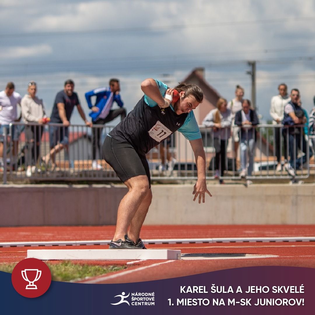 Náš guliar Karel Šula ml. vyhral 1.miesto vo vrhu guľou (6kg) s výkonom 19,01m.