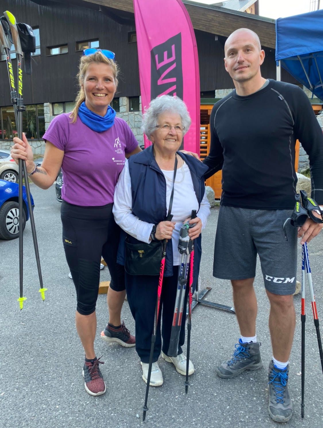 Riaditeľ NŠC Vladimír Baluška so seniorkou a Luciou Okoličányovou, inštruktorkou Nordic Walking.