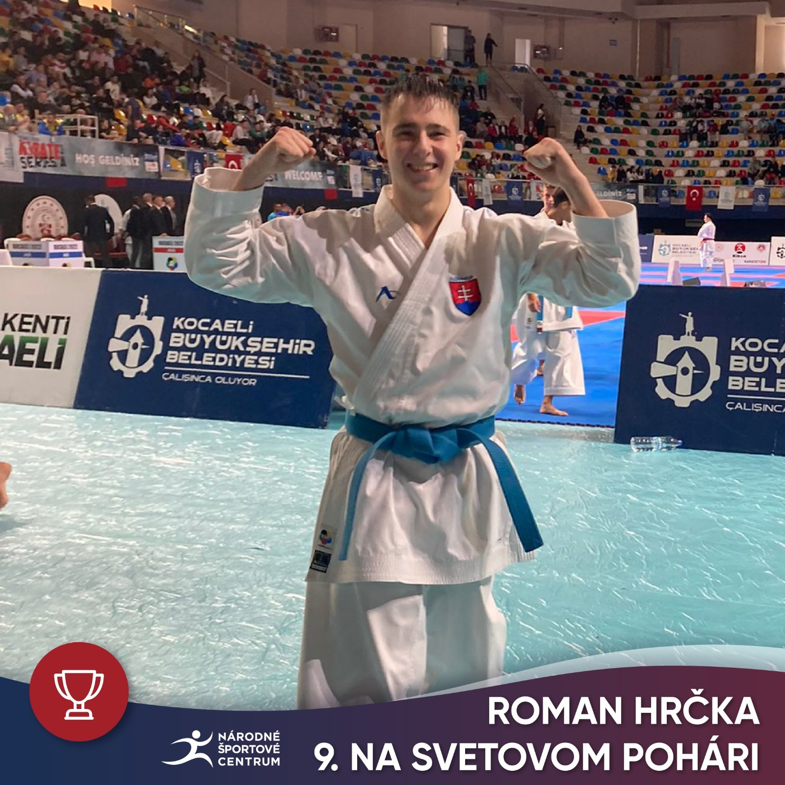 Karatista Roman Hrčka, zverenec Kristíny Mackovej, včera vybojoval 9. miesto na svetovom pohári série A - WKF K1 SA KOCAELI 2022 v Turecku.