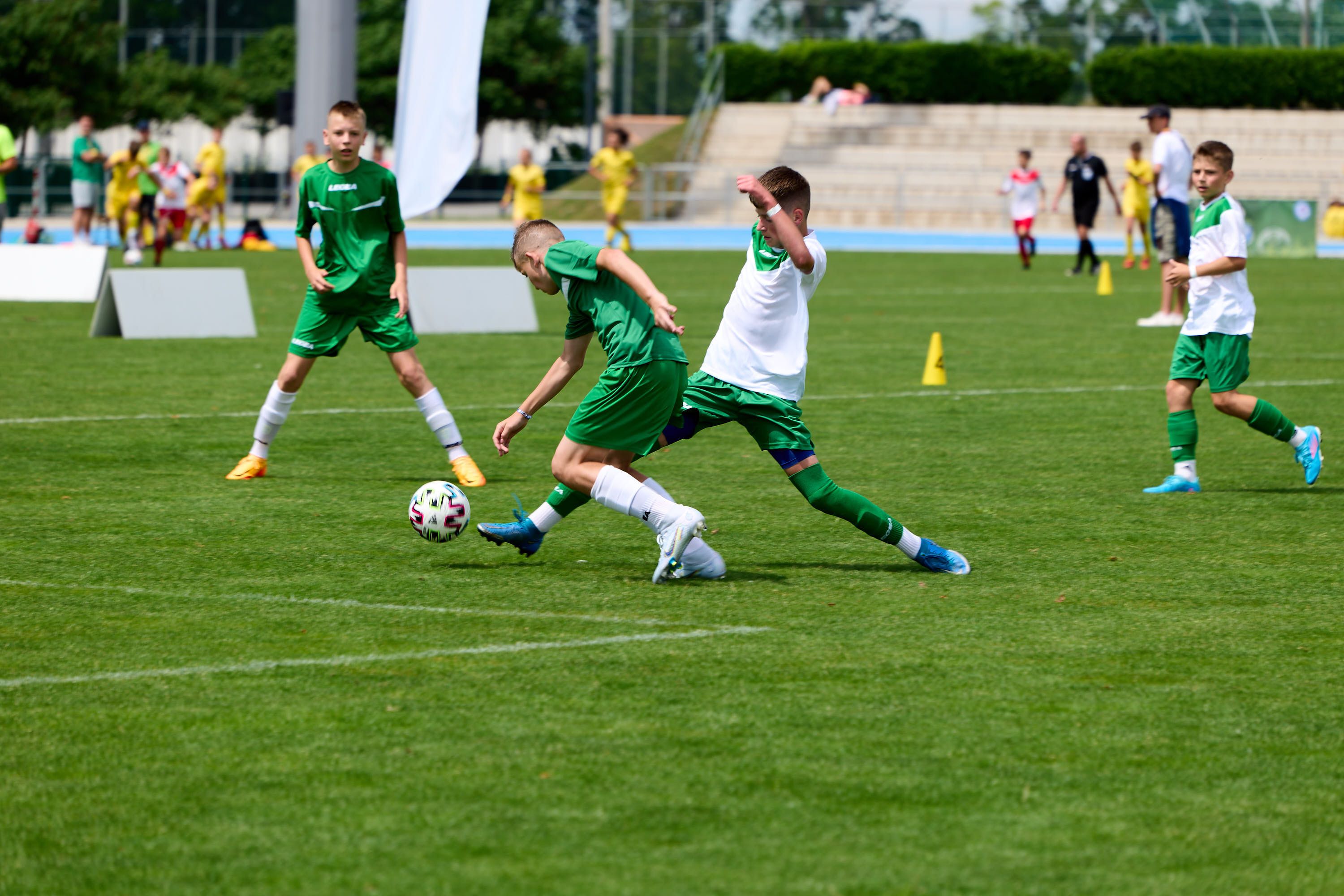 Na veľkom atletickom štadióne prebehla súťaž 4-boja v atletike a futbalový turnaj. V priestore menšieho atletického oválu si deti zmerali sily vo vybíjanej a v 4-kovom volejbale, ktorý sa konal tentokrát netradične na tráve.